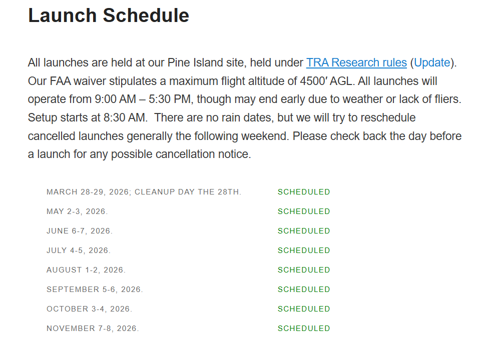 The launch schedule has been posted by the METRA Rocket Club for 2026!