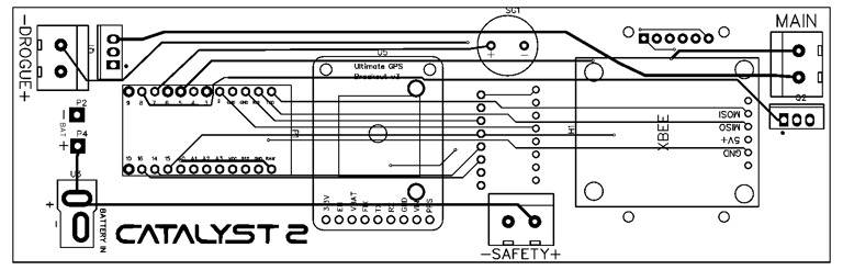 Developed to assist the group build team, Catalyst 2 Revision 2 emerges as a refined testament within the Avionics Group. Building upon the successes of Catalyst 2, this iteration seamlessly integrates its features while introducing a significant enhancement: dedicated Drogue and Main Parachute deployment channels. This careful fusion embodies our dedication to continuous improvement and attention to detail, solidifying our pursuit of a comprehensive and reliable flight computer solution.